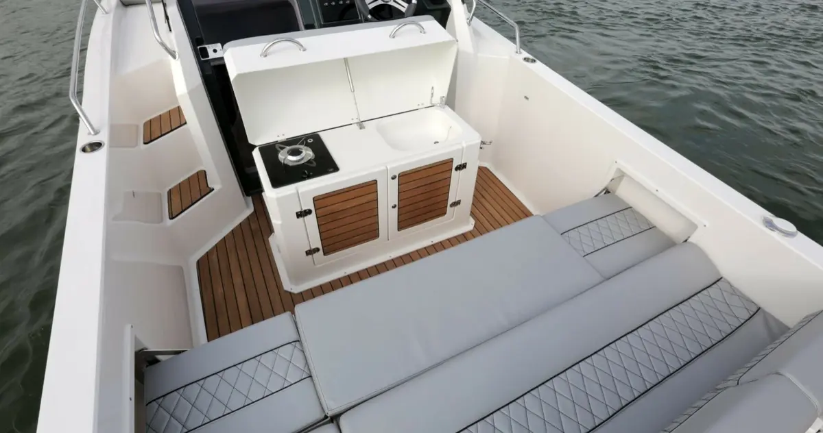 Une ligne classique et sportive, une cabine des plus raffinée,un pont très équipé (second bain de soleil en standard)et un bain de soleil avant immense font de ce sundeck la référence de la catégorie.